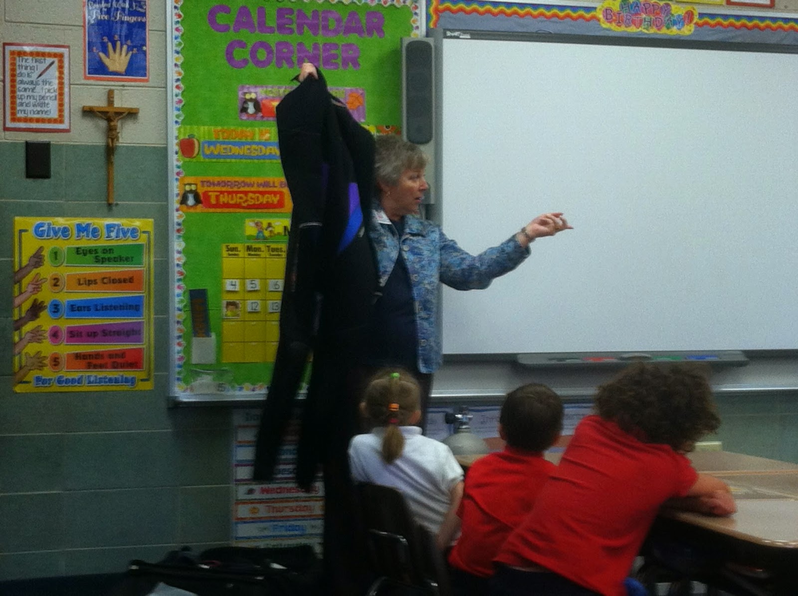 Yesterday, we had my aunt come and talk to my class. We have been learning about all of the different oceans and the different creatures in the oceans. My aunt is a scuba diver. She came to share some of the pictures of animals she has seen while on her scuba adventures. She also shared some of the shells and coral that she has. We also got to see the equipment she uses when she goes scuba diving. The kids loved looking at all of the pictures and seeing what she had to show. They came up with some great questions as well!